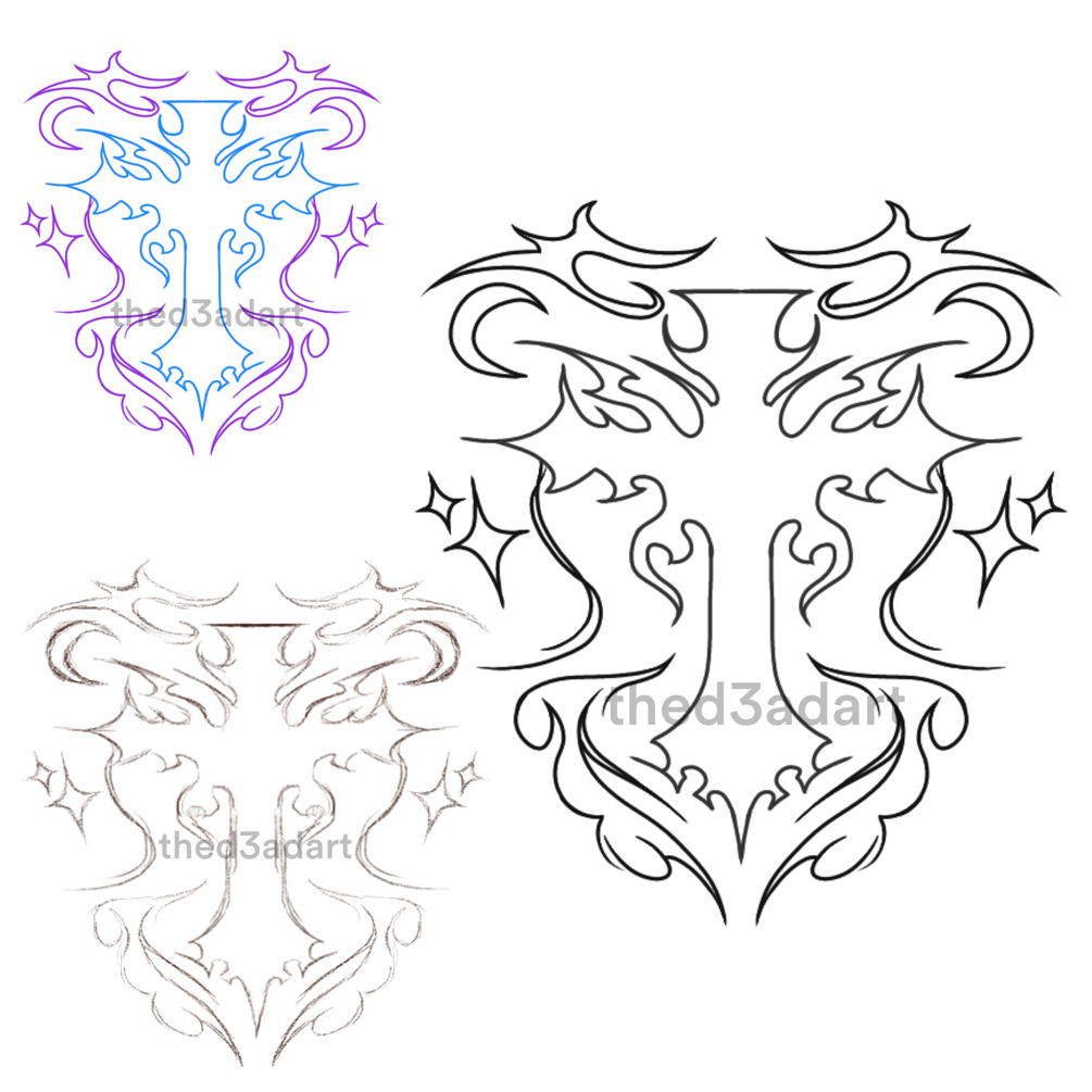 This design combines the aesthetic of both cyber and tribal art, centering on a stylized cross. The design features bold, fluid line to create a modern look; perfect for someone with a unique blend of traditional symbolism with edgy looks.